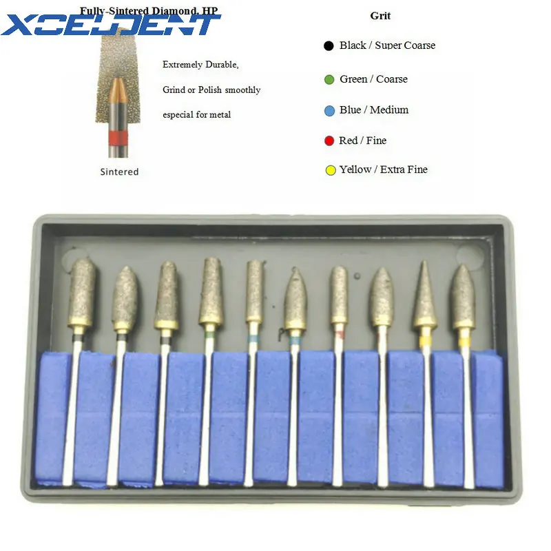 HIGH QUALITY 10pcs/set Dental Lab Universal Sintered Diamond Polisher Kits Burs Grinder for Polishing Trimming D